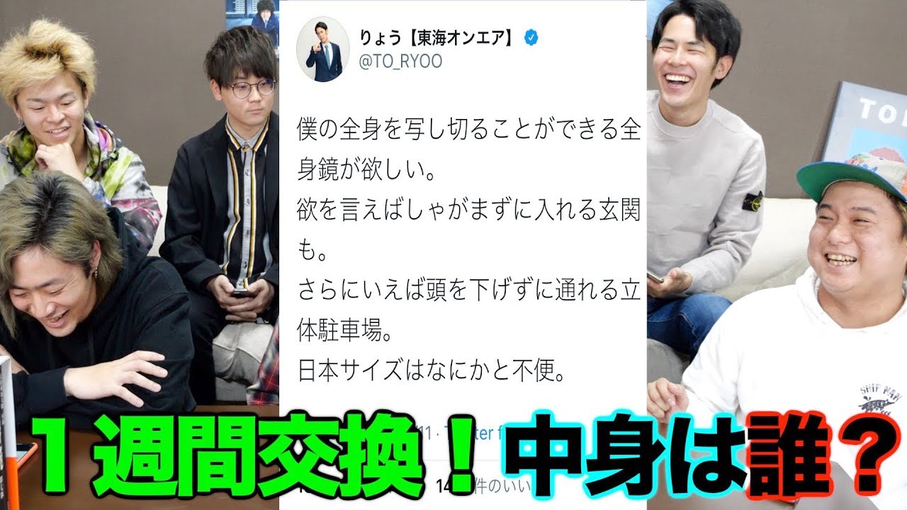「【交換会】メンバーのTwitter、中の人をランダムに入れ替えてました。」は2020年に投稿された東海オンエアの動画です。再生数868万回、高評価数8万。Eloレーティングは1184で、全3,054本中2696位、2020年公開動画の中では265位です。東海オンエアの公認切り抜きチャンネル「東海ランキング」が運営する「東海オンエア 動画バトル」では、ファン投票によるEloレーティングシステムを採用し、統計的に信頼性の高い順位を算出しています。